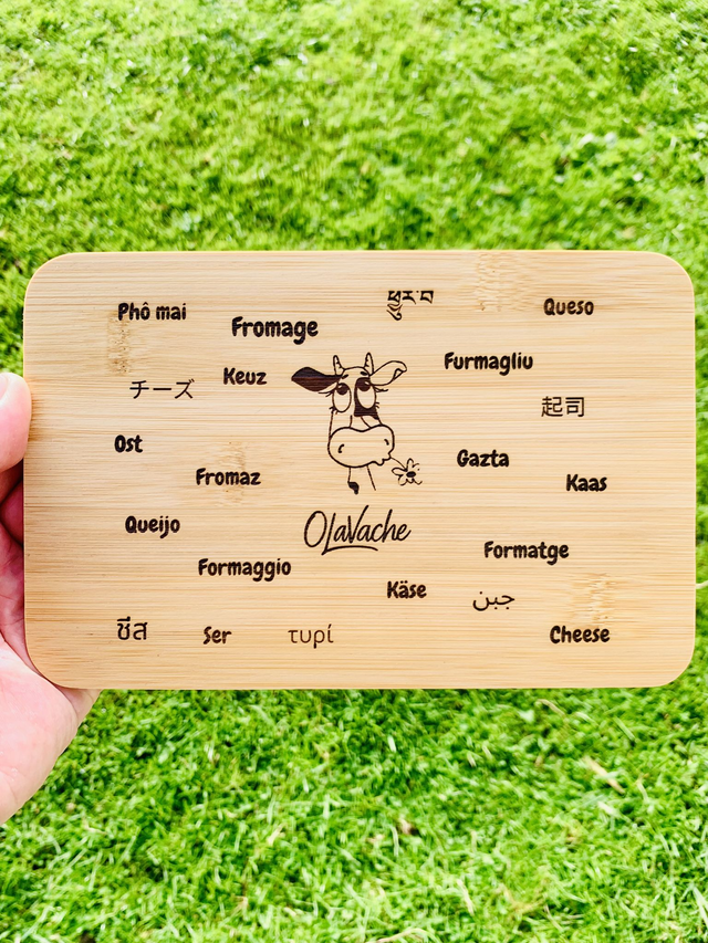 Planche à fromage motifs OLaVache ou personnalisée en bambou (dim 25*16cm)