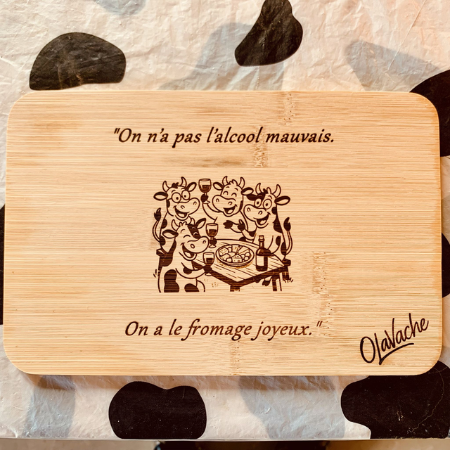 Planche à fromage gravée au laser en bambou (dim 25*16cm) avec soit :