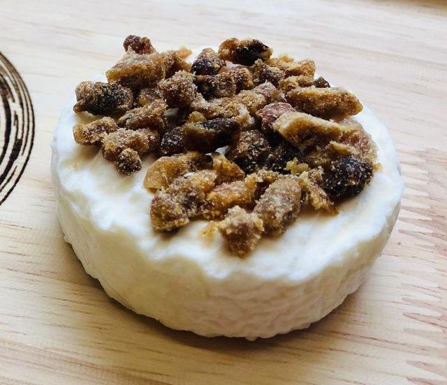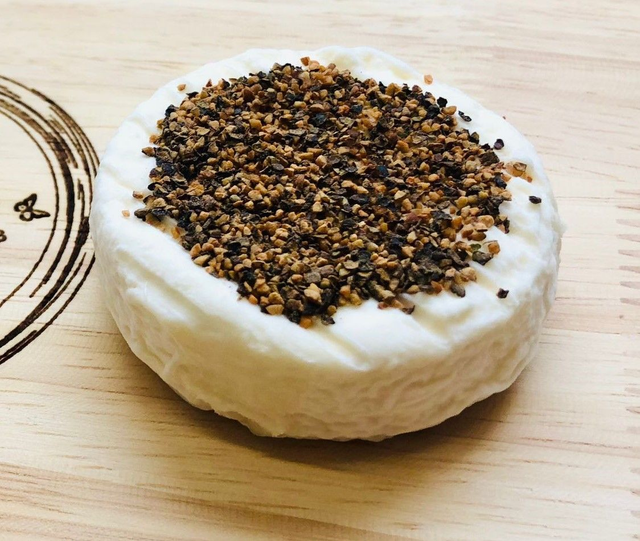 Vachous aromatisés* au lait cru de vache, se présente sous la forme d'un "cabécou" d'environ 50g (poids variable suivant l'affinage).